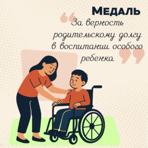 Условия награждения: медалью могут быть награждены родители, которые постоянно проживают на территории Иркутской области не менее 10 лет, достойно воспитывают и обеспечивают надлежащий уход и заботу о ребёнке-инвалиде и (или) инвалиде с детства, проживающем совместно с ними, и активно участвуют в общественной жизни.