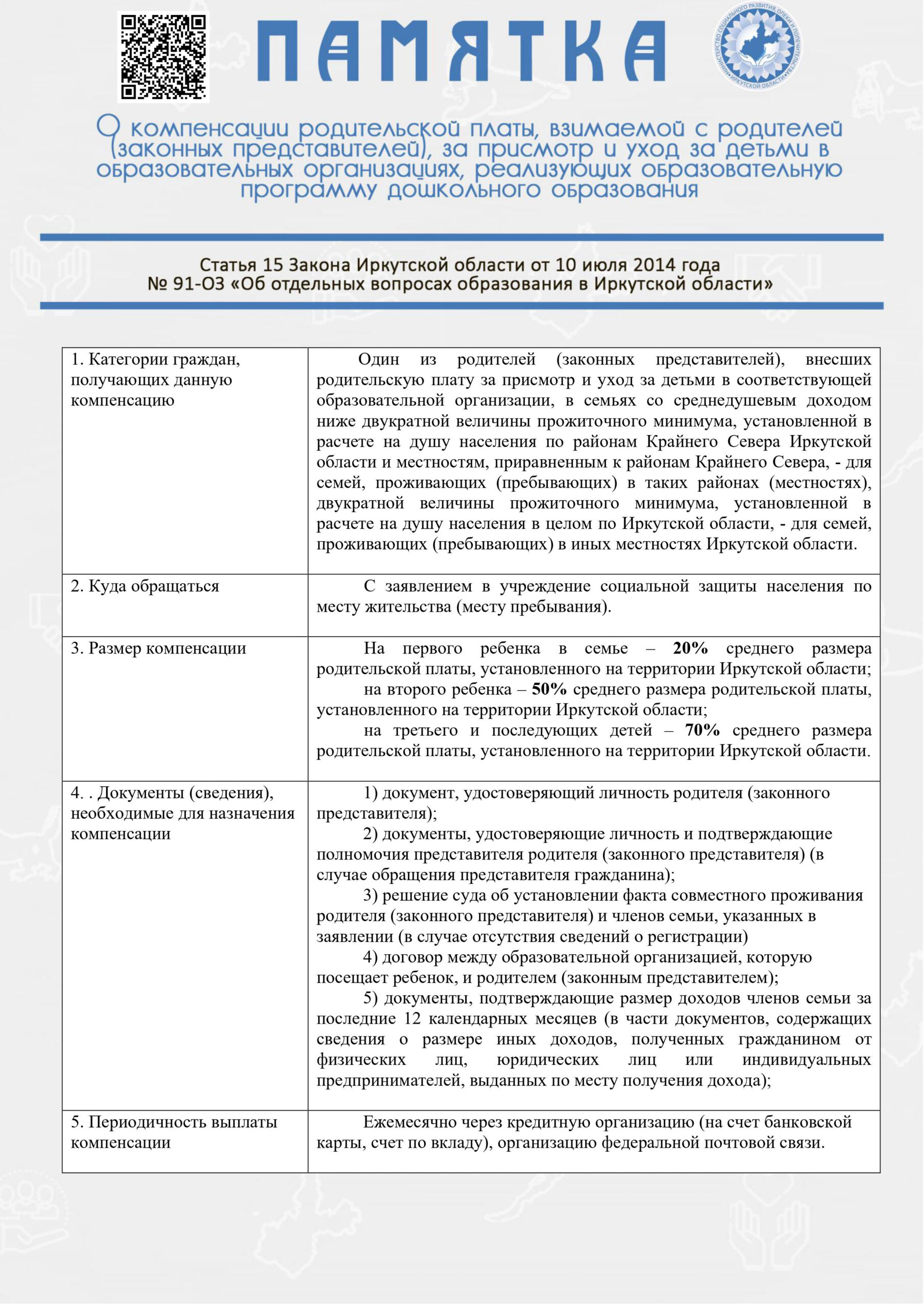 - О социальной поддержке в Иркутской области семей, имеющих детей
