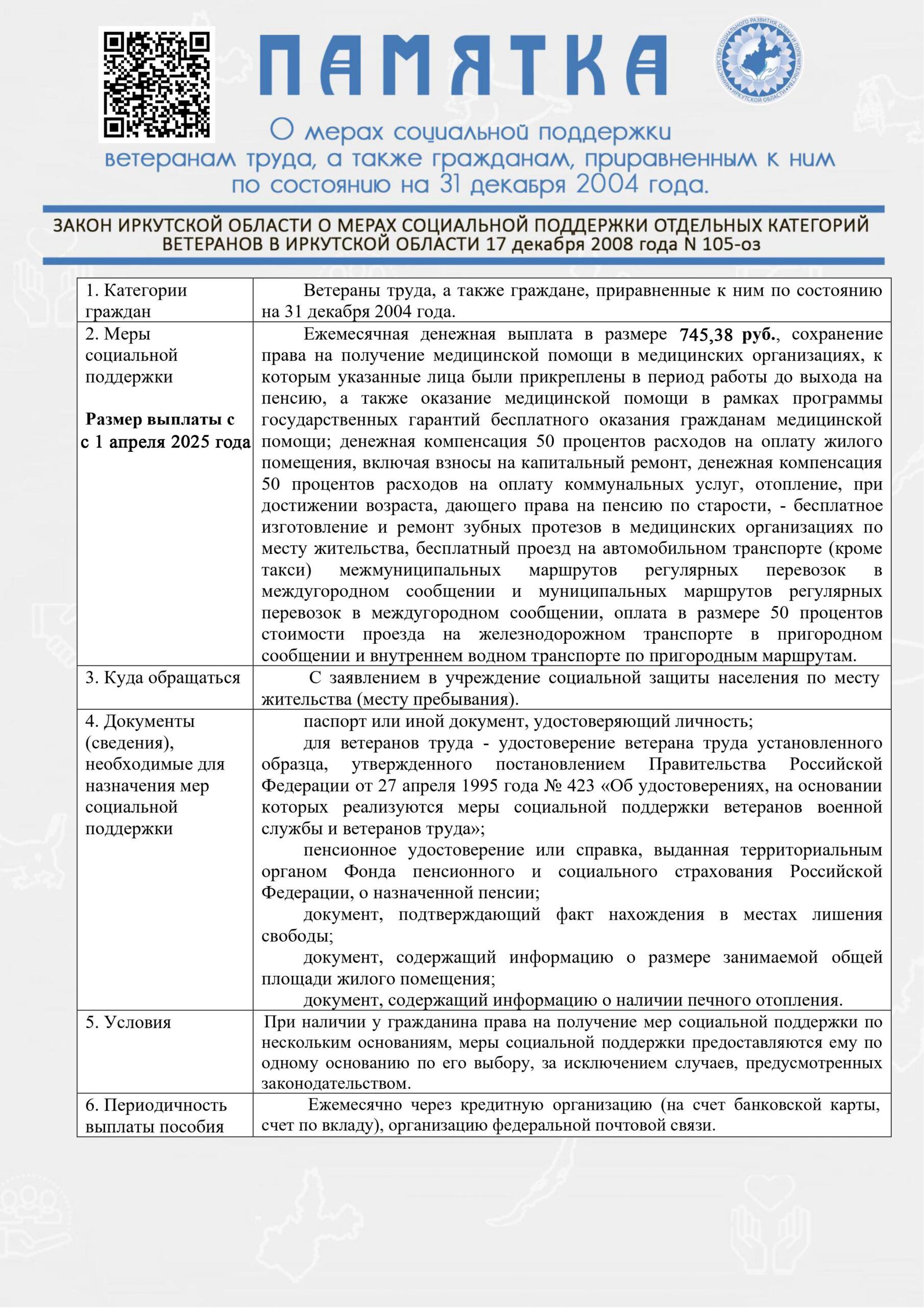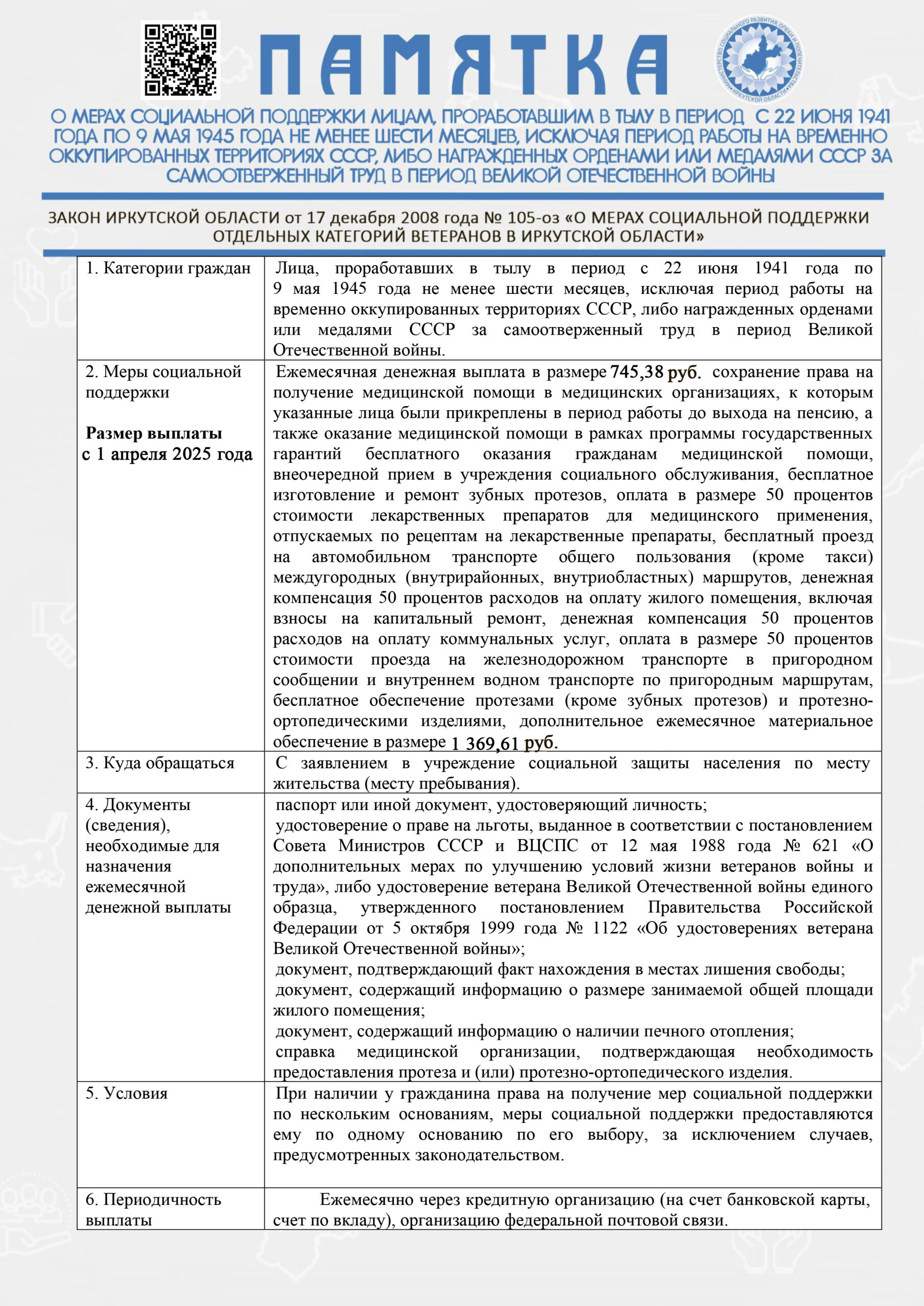 - О ежемесячной денежной выплате отдельным категориям неработающих граждан в Иркутской области