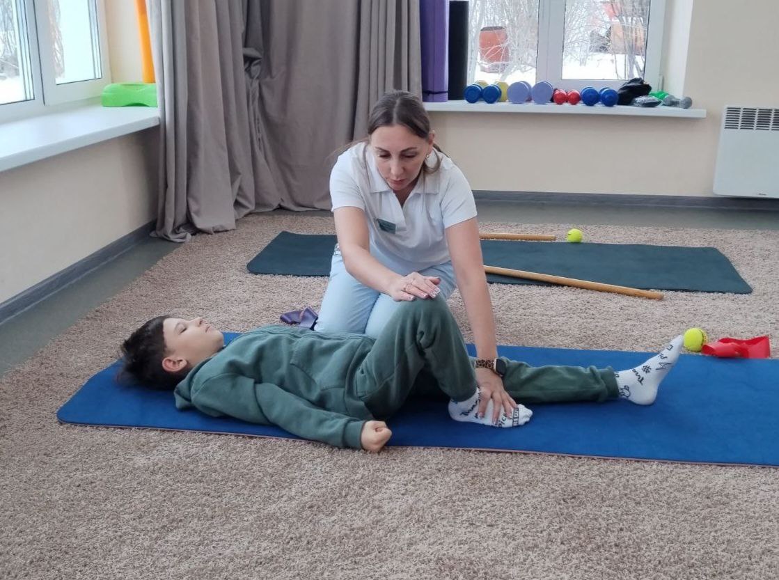 Затем специалисты по лечебной физкультуре (ЛФК) провели для детей развивающие занятия. Они продемонстрировали полезные упражнения для физического развития, как в подгруппах, так и в индивидуальном формате.