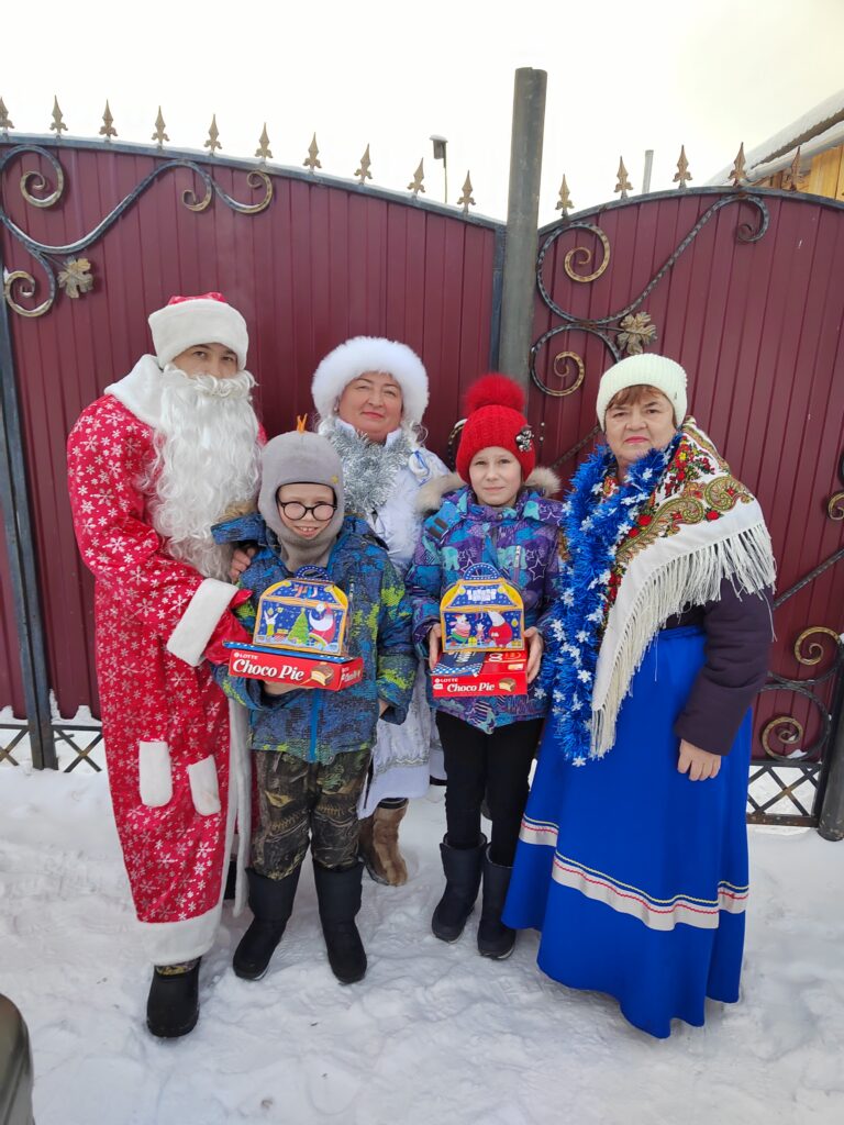 Праздничные мероприятия для детей прошли в районной библиотеке им. Скифа и в СКЦ «Кадинский». Но главное волшебство происходит, когда подарки находят своих адресатов. Облачившись в костюмы Деда Мороза и Снегурочки, социальные работники лично посещают семьи. Новогодние стихи, песни и даже хороводы – для этих современных волшебников нет ничего невозможного!